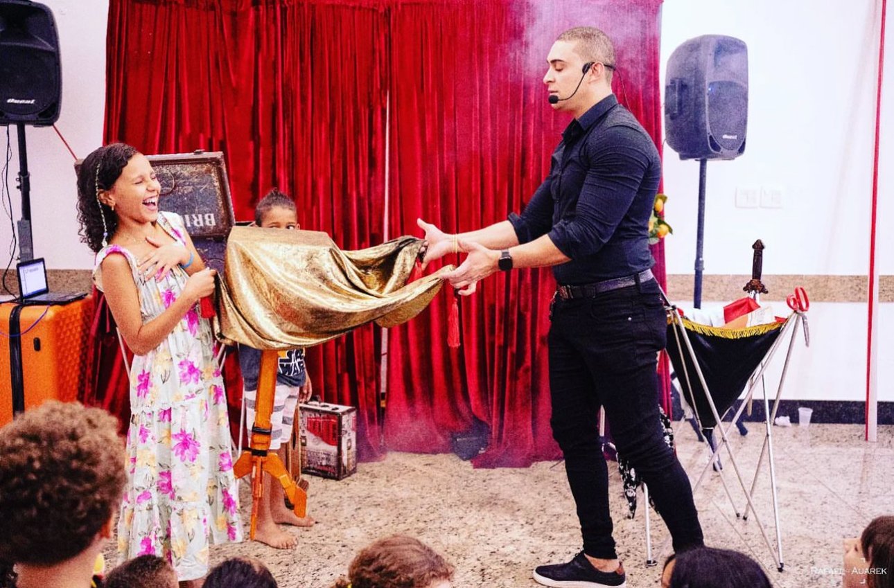 Encante as mentes jovens com momentos mágicos repletos de surpresas e aprendizado! Em eventos escolares, teatros ou qualquer ocasião voltada para as crianças, o Mágico Deivid traz uma experiência única que combina diversão e educação. Um espetáculo cativante e interativo que envolve os pequenos espectadores e estimula a curiosidade e a imaginação.